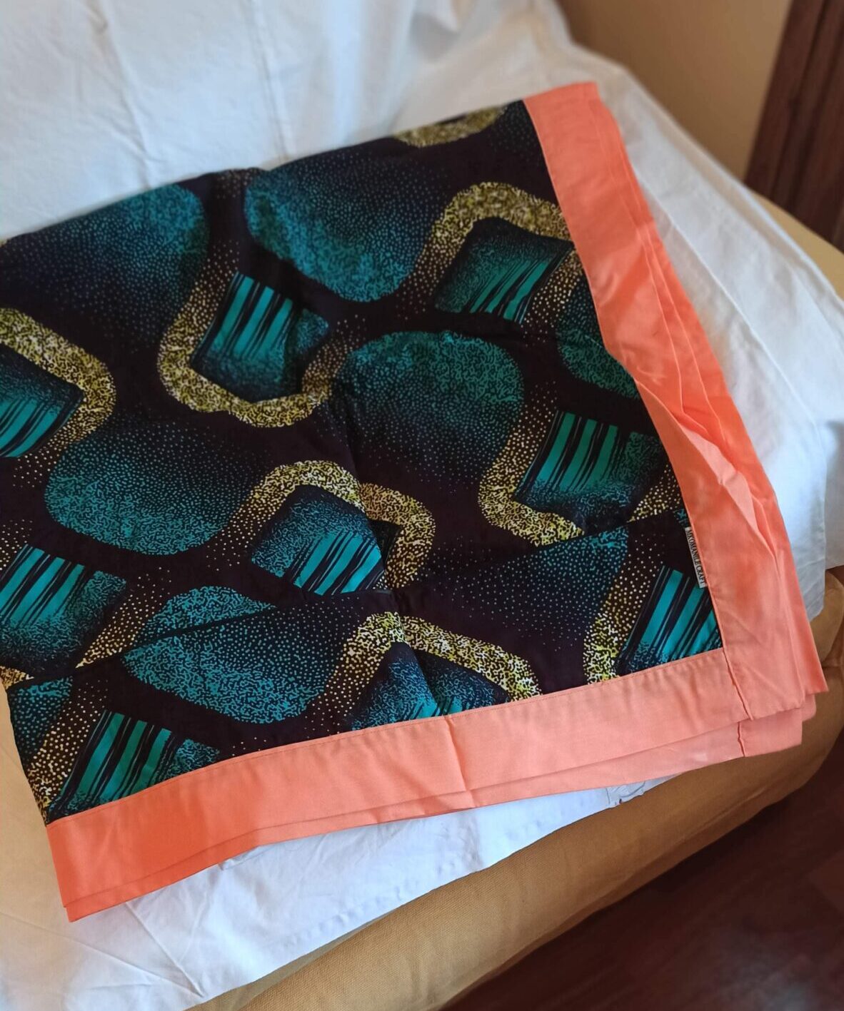 Tovaglia in kitenge con bordi in cotone/wax. Aggiunge colore alla sala da pranzo ed è personalizzabile nelle misure e nei tessuti.
